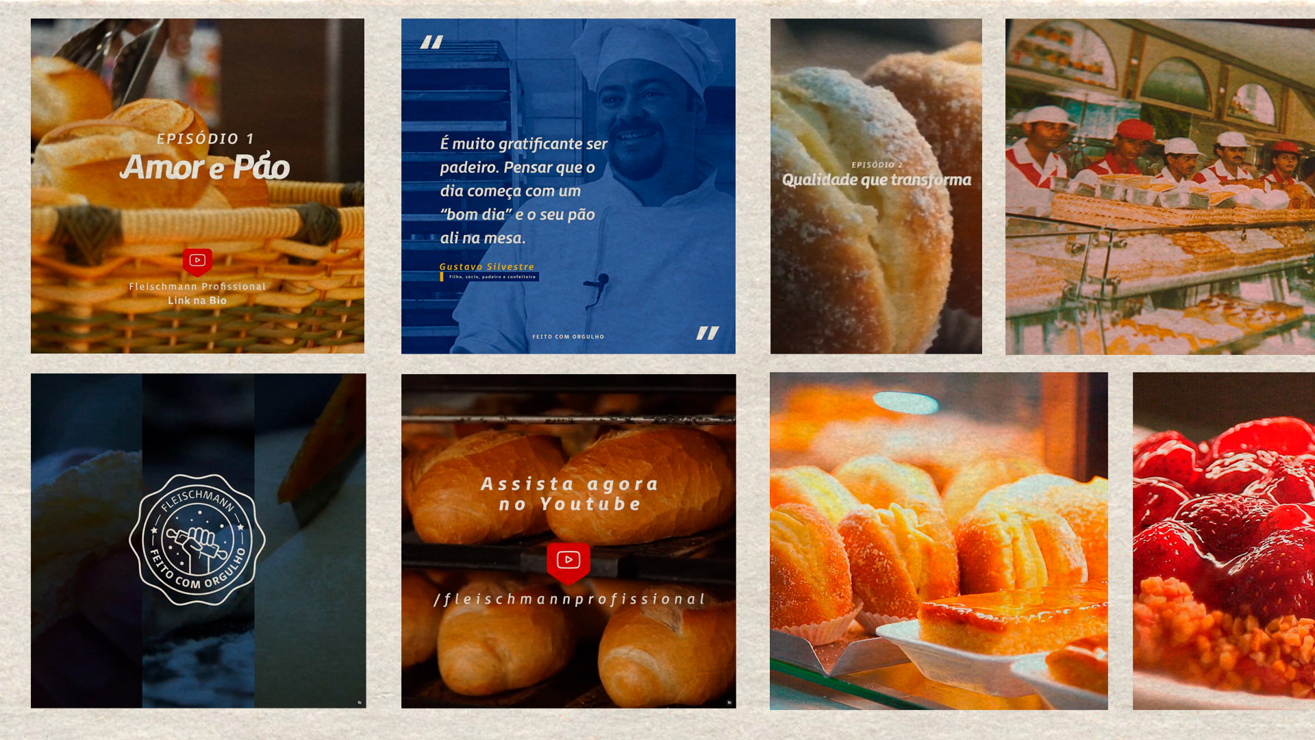 A estética dos filmes explora de forma ampla o apetite appeal das receitas, focando na textura, brilho e qualidade dos produtos Fleischmann. Esse recurso garante o interesse do público em assistir os filmes e, dessa forma, conseguimos atrair a atenção tanto dos proprietários de padarias quantos dos consumidores finais de uma forma mais natural.